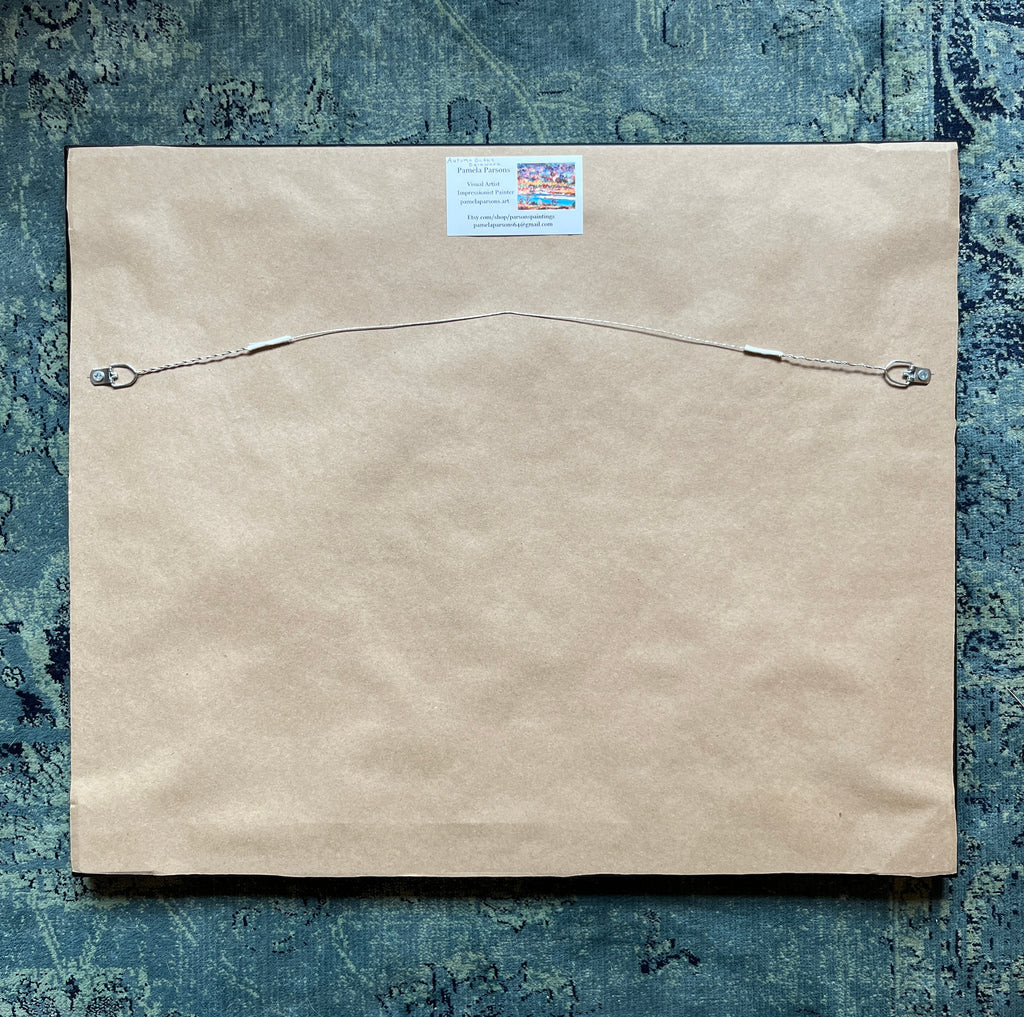 • Framed in beautiful wood frame with gold highlights. as shown in photo.